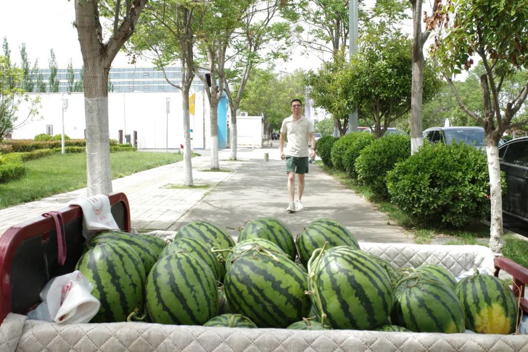 到達(dá)終點(diǎn)后,大家一起品嘗鮮甜的西瓜,為炎熱的天氣帶來(lái)了陣陣清涼。